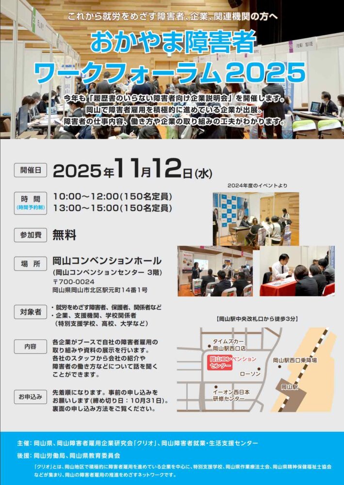今年も2025年11月12日(水)に「おかやま障害者ワークフォーラム2025」